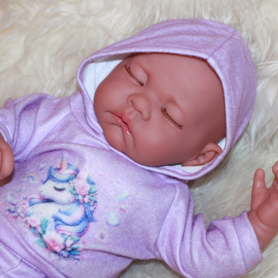 Rozkošné spiace dievčatko meria 43 cm. Telíčko má látkové, končatiny z vinylu. Bábika má sladkú a pokojnú tvár a oči sú navrhnuté tak, aby boli prirodzene zatvorené, akoby boli ponorené do sladkých snov, vyžarujúc tichú a pokojnú atmosféru a prinášali útechu duši. Vlásky nemá.