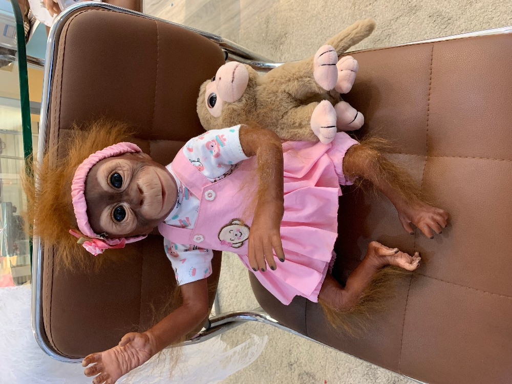 Opička meria 52 cm. Má mäkké telo a končatiny z vinylu.