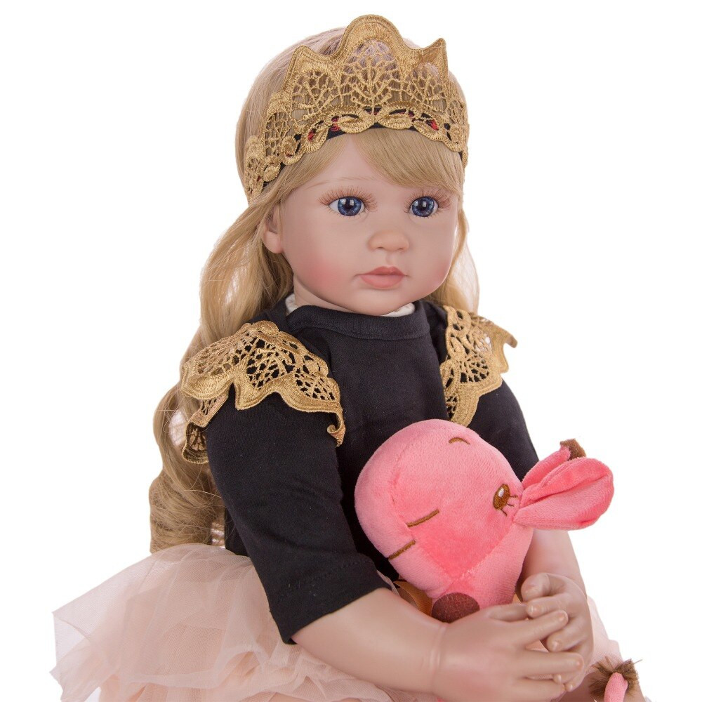 Nádherná bábika. Meria 60 cm. Telo má mäkké, končatiny z vinylu. Príde v tomto oblečení. Pridáme fľašku, cumlík.