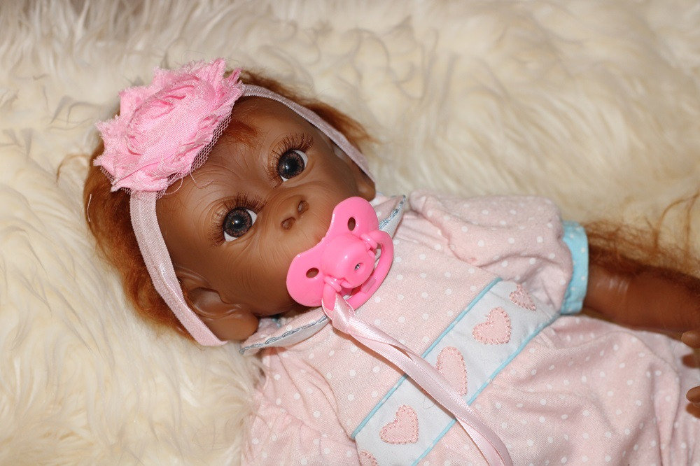 Opička meria 40 cm. Má mäkké telo a končatiny z vinylu.