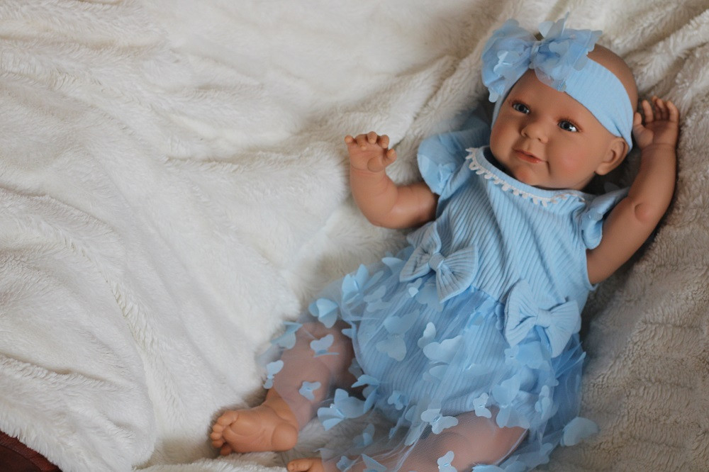 Veľmi pekná bábika. Meria 53 cm, v. Telo má mäkké- vyplnené granulátmi, alebo umelým vláknom, vatou. Vlásky nemá. Končatiny má z vinylu, ktorý je príjemný na dotyk. Bábika može byť modrooká, alebo hnedooká. Ručičkami sa veľmi dobre manipuluje.