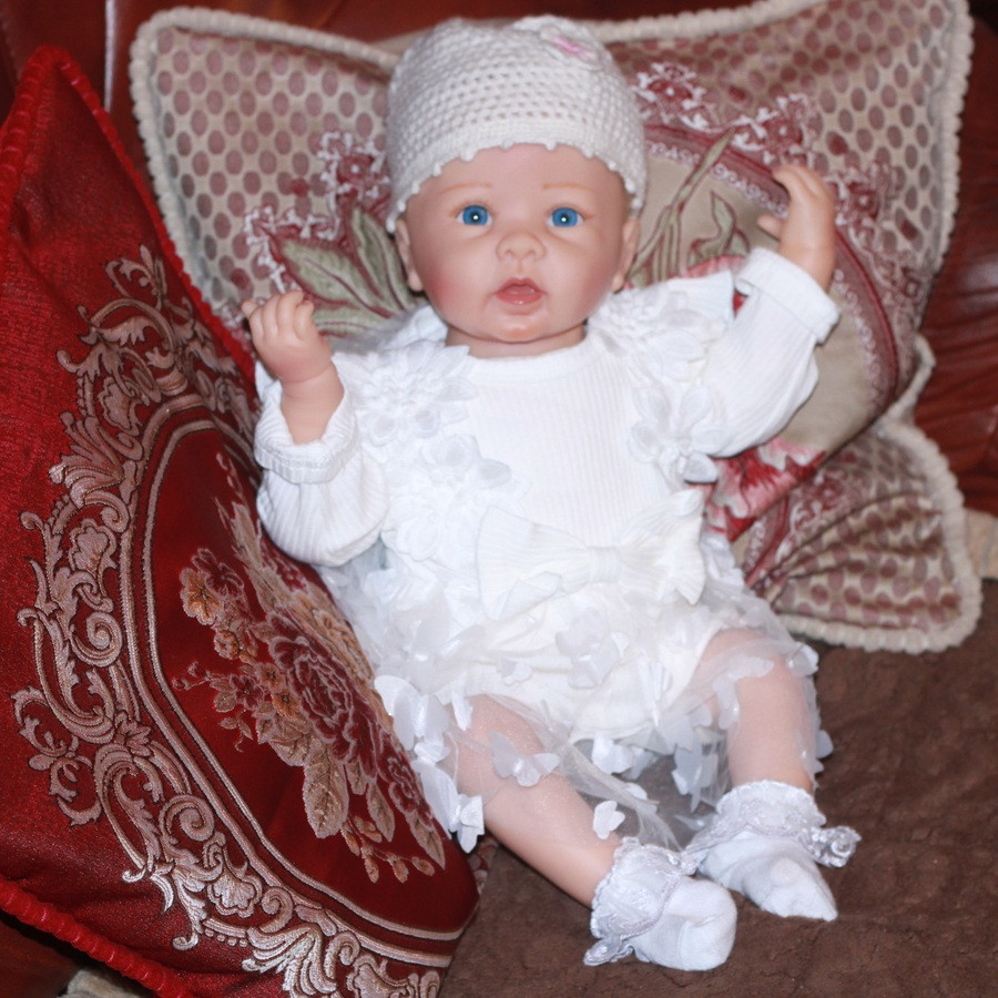 Veľmi milučké dievčatko. Sediaca, alebo ležiaca. Ručne vyrobená koža z REALTOUCH vinyl, dáva bábike naozajstný nádych reálnosti. Meria 51 cm. Telo má mäkké-látkové vyplnené granuláty, vláknom, alebo inou výplňou, končatiny má z kvalitného vinylu. Bábiky sú mimoriadne kvalitné, nie sú to obyčajné bábiky. Na dosiahnutie efektu podobného skutočnému dieťaťu sú bábiky vyrobené z prémiových dovážaných maliarskych materiálov a farba kože je nakreslená v 3D, aby boli bábiky jemnejšie. Žily a koža bábiky sú namaľované veľmi realisticky, rovnako ako u skutočného dieťaťa. Je výtvorom LINDYY MURRAY. Kajka otáča hlavičkou a plače, alebo sa smeje.