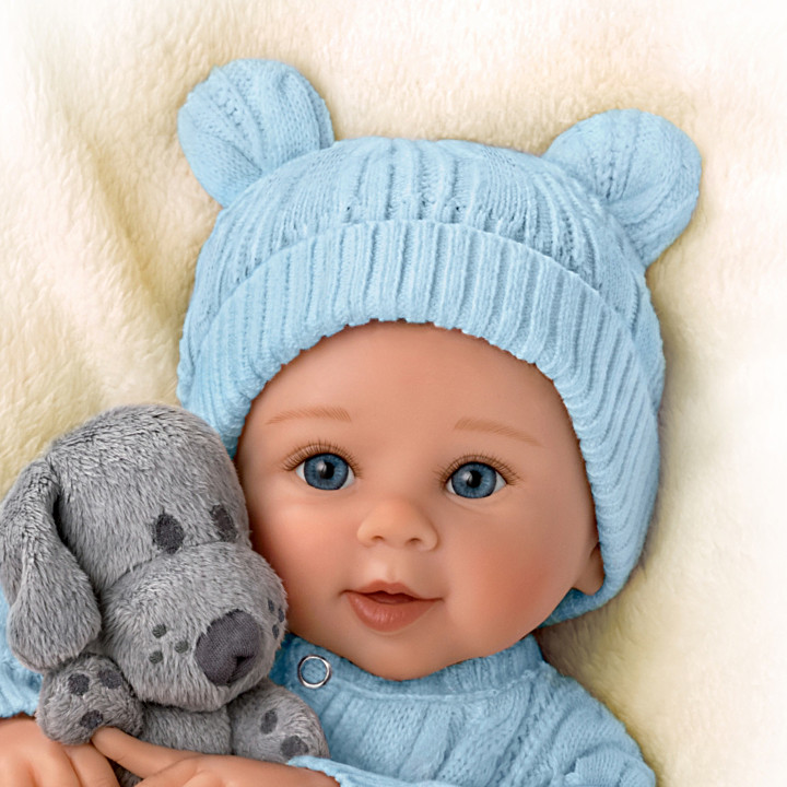 Malý "Adrian" je umelecky vyrobený ručne . Meria 43 cm. Jeho hlava, ruky a nohy sú vyrezávané z neuveriteľne realistického vinylu RealTouch® . Jeho výrazná tvár s nebesky modrými očami, roztomilým tupým nosom a jemnými rukami a nohami sú ručne farbené do veľkých detailov . Jemné vlásky sú zakorenené ručne a "Adrian" nádherne vonia po čerstvom detskom púdri. Vďaka telu z mäkkej tkaniny sa "Adrian" nielen cíti ako živý, ale môže sa tiež znova a znova posúvať do nových polôh. Či už sa "Adrian" hrá alebo si zdriemne, jeho najlepší kamarát, mäkký plyšový psík "Alfie", je vždy po jeho boku